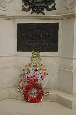 In 1940, it was put in storage during construction of The Citadel. It was relocated to its present position in 1948.[1] In 2000 the sculpture was rededicated as the national monument for the Royal Marines. It was unveiled by the Duke of Edinburgh, the Captain General of the Marines.[2] The memorial became the focus of the annual Graspan Parade and is maintained by The Royal Parks.[1][2]