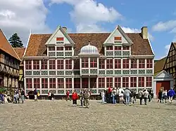 Gotfred Krüger, who was the king's mint master from 1664 to 1680, acquired a property in Borgergade in 1671 while the production of coins took place in a neighbouring building. This lasted until 1749 when it was sold. The Mint Master's House was dismantled in 1943 and put into storage. It has now been rebuilt in the Old Town open-air museum in Aarhus.[1]