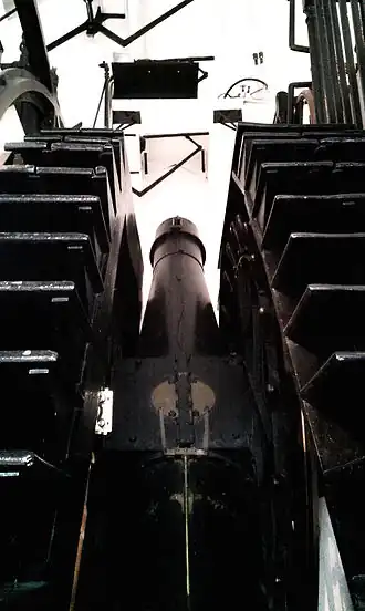 The telescope was installed by 1893, with 28-inch diameter glass doublet lens made by Grubb from Chance of Birmingham glass.[36] The new dome was made by T. Cooke and Sons.[36] This replaced a smaller drum-shaped dome.[36]