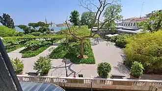 In the year 2000, the Italian State transferred the former private rooms of the palace facing the lagoon to the municipality, which had been used as offices since the 1920s. A restoration sponsored by the French Committee for the Preservation of Venice was then initiated. The nine rooms restored by various sponsors were opened to the public in July 2012 under the name "Empress Elizabeth's Rooms."[28] In 2017, the restoration of three ‘ridotti’ of the Marciana Library was also completed. Originally intended for Viceroy Eugène de Beauharnais, they were redecorated in neoclassical style between 1807 and 1811.[29]