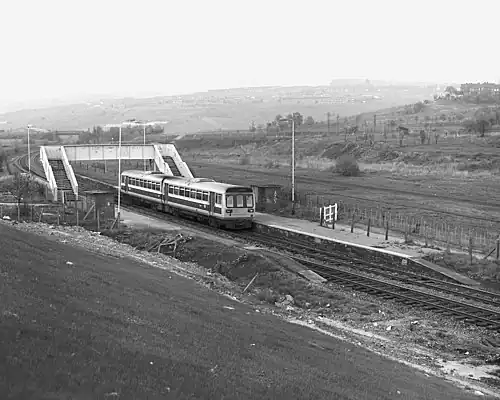 Royton Junction railway station was a station on the Oldham Loop Line in Greater Manchester, England. It opened on 1 July 1864, and was the junction for the short branch line to Royton railway station. The line to Royton was closed to goods on 2 November 1964, and to passengers on 16 April 1966.[1] A 450-yard section of the line remained in use for freight traffic from Royton Junction to Higginshaw Gas Sidings. This final part of the Royton Junction to Royton line closed on 6 April 1970.[2]