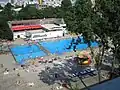 Delfín swimming pool and five residential towers (kúpalisko Delfín a päť vežových domov) | Ružová dolina Street No. 12-22 (Nivy neighborhood) | Architectonic complex of residential buildings featuring a public swimming pool, considered to represent the best urbanistic residential neighborhood project to be realised in Bratislava in the 1950s and 1960s.