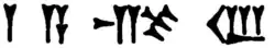 The cuneiform ru sign is found in both the 14th century BC Amarna letters and the Epic of Gilgamesh. As ru it is used for syllabic ru, and alphabetic 'r', or 'u'. In the I-XII Tablets of the Epic of Gilgamesh, it has specific uses showing alternate renderings besides ru; as sign no. 068, ru, 250 times, šub, 6, šup, 3, and as Sumerogram ŠUB, 1 time.[1] In the Amarna letters, the sign is mostly used for ru, r, and u in the spelling of various words. Notably, for "bird", Akkadian language "iṣṣūru",[2] in Amarna letter EA 28, (Tushratta to Pharaoh), titled "Messengers Detained and a Protest"; the messengers are referenced as "uncaged" birds, and "aren't they free to come and go as birds do?".