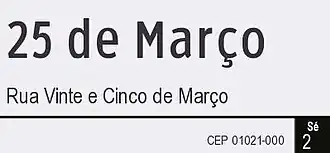 Rua 25 de Março or Rua Vinte e Cinco de Março (transl. March 25th Street – transl. March Twenty-fifth Street) is a popular shopping street in the central zone of São Paulo, Brazil. The district surrounding Rua 25 de Março has long been synonymous in Brazil with large crowds and discount shopping.