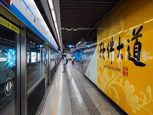 Ruanjiandadao station (simplified Chinese: 软件大道站; traditional Chinese: 軟件大道站; pinyin: Ruǎnjiàndàdào Zhàn; lit. 'software avenue station'), is a station of Line 1 of the Nanjing Metro, named after and located along the eponymous avenue of the same name. It began operations on 28 May 2010,[1][2] as part of the southern extension of line 1 from Andemen to CPU.