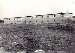 The Gummiinsel was built 1932-39 as part of the Nazi Siedlungspolitik, a programme of relocating parts of the urban populations in highly organized self-suffient suburban communities. The homes were small two-storey red brick houses with no basement, each with a small front yard. They were built within a concept similar to council houses as emergency shelters, especially for families of Yenish tradesmen, showmen, scrap merchants, second-hand dealers and descendants of regional Sinti families.[1]