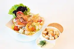 Rubiyan salad (Arabic: سلطة الروبيان or jambariyy salad Arabic: سلطة الجمبري meaning shrimp salad), is a type of Arab salad, typically made of shrimp, tomato. mayonnaise, lettuce leaves, ketchup, hot sauce, mustard, lemon juice, and salt.[1][2]
