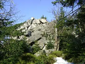 The Rudawy Janowickie (Czech: Janovické rudohoří; Silesian: Czyrwōnkasty Janowickie) or Landeshut Ridge is a mountain range in the Sudetes in Lower Silesian Voivodeship in south-western Poland. The highest point is Ostra Mała (Sharp Little) - the southwestern summit of Skalnik. The most difficult is Enis, whose easiest route is rated VI UIAA.