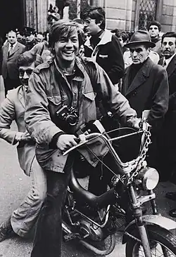 Although Rudi Frey was born in Germany, he grew up in Salzburg. After leaving school, he left Salzburg and rarely returned there throughout his life. He first went to Paris to study film and began working as a photographer. He then assisted photographers Barry Lategan and David Bailey in London. In 1973, he got a job in Rome at the Italian magazine Panorama and moved to the Italian capital. Later he also worked for Time.[1] It is said about his life that it almost ideally traces the biography of the independent, reckless photographer of the "golden age of press photography."[[2][3]