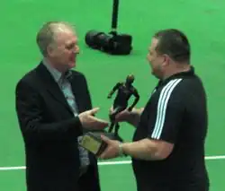 The Rudolf Harbig Memorial Award (German: Rudolf-Harbig-Gedächtnispreis) is an annual sports award in recognition of German competitors in the sport of athletics who, in performance and attitude, have been role models for young people. The award was created in 1950, named after German middle-distance runner Rudolf Harbig, who died age 30 fighting for the Wehrmacht in World War II. The award was suggested by the Clubs der Alten Meister (Old Masters Club), a union of former athletes and made official by Karl Ritter von Halt, the former leader of the National Socialist League of the Reich for Physical Exercise. Given by the German Athletics Association (DLV), the award was for West German athletes only prior to German reunification.[1][2]