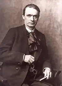 Rudolf Joseph Lorenz Steiner (German: [ˈʃtaɪnɐ]; 27 or 25 February 1861[1] – 30 March 1925) was an Austrian philosopher, occultist,[10] social reformer, architect, esotericist,[11][12] and claimed clairvoyant.[13][14] Steiner gained initial recognition at the end of the nineteenth century as a literary critic and published works including The Philosophy of Freedom.[15] At the beginning of the twentieth century he founded an esoteric spiritual movement, anthroposophy, with roots in German idealist philosophy and theosophy. His teachings are influenced by Christian Gnosticism[i] or neognosticism.[17][18][19] Many of his ideas are pseudoscientific.[20] He was also prone to pseudohistory.[21]