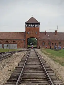 On 6 March 1944 Vrba heard that the Czech family camp was about to be sent to the gas chambers.[77] The group of around 5,000, including women and children, had arrived in Auschwitz in September 1943 from the Theresienstadt concentration camp in Czechoslovakia. That they had been allowed to live in Auschwitz for six months was unusual, not least because women with children were usually murdered immediately. Correspondence found after the war between Adolf Eichmann's office and the International Red Cross suggested that the Germans had set up the family camp as a model for a planned Red Cross visit to Auschwitz.[78] The group was housed in relatively good conditions in block BIIb near the main gate, although in the six months they were held there 1,000 died despite the better treatment.[79] They did not have their heads shaved, and the children were given lessons and access to better food, including milk and white bread.[80]