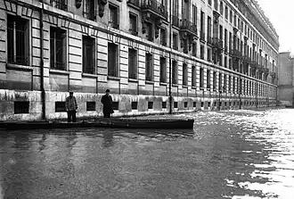 - No. 56: built under the Regency by François Bruand and refurbished by Eudes, architect for the Ministry of Finance, in 1858. Burnt down during the Paris Commune in May 1871, it was rebuilt by the same architect in neo-Louis XV style (1873-1880) on a plan close to the original.[34] An office building was subsequently constructed on rue de Lille in the 1930s. See also 1-3, quai Anatole-France (Caisse des dépôts et consignations).