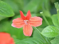 It is used as an ornamental plant, and it is pollinated by hummingbirds. Large scarlet-red blooms on & off from spring until first frost. Can take full sun with adequate moisture like in a tropical location but best in shade. Generally deer-resistant.