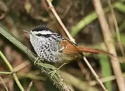 The rufous-tailed antbird (Drymophila genei) is a species of bird in subfamily Thamnophilinae of family Thamnophilidae, the "typical antbirds". It is endemic to Brazil.[2]