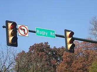 Rugby Road is a street in Charlottesville, Virginia that serves as the center of the University of Virginia's fraternity and sorority system and its attendant social activity. It is located across the street from central Grounds, beginning at University Avenue across the street from the Rotunda branching off at Preston Avenue and finally curving down to the 250 Bypass, and marks one end of The Corner, a strip of restaurants and stores that cater mainly to students. Rugby Road is lined with a variety of architecturally significant houses from several different decades. Many of these are currently used by fraternities and sororities, although the majority of them were originally intended for single-family use; William Faulkner was one famous resident while he was a writer in residence at the university.[1]
