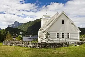 Rugsund is a village in Bremanger Municipality in Vestland county, Norway. The village is located on the mainland along the shore of the Nordfjorden. The village is home to Rugsund Church, the local church for this part of the municipality. There has been a church here, serving the Rugsund parish since the Middle Ages.[2] There is a bridge on the south side of the village that connects the mainland to the island of Rugsundøya, just to the west. That island in turn is connected to the island of Bremangerlandet by the Skatestraum Tunnel, so all residents of western Bremanger must pass through Rugsund to get to the mainland.