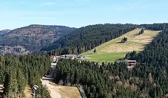 Ruhestein lies on the Black Forest High Road, which links Baden-Baden and Freudenstadt. It is a popular day trip and recreation destination and a well known winter sports resort with ski lifts on the Ruhesteinberg, ski jumps (Große Ruhesteinschanze) and loipes. The winding road between Baiersbronn-Obertal and the Ruhestein was used once, on 21 July 1946, for a mountain motor race, the Bergrennen Obertal-Ruhestein, during which 3 participants lost their lives.[1]