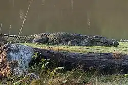 The reptile fauna recorded from the park is 47 and six of them are endemic. Sri Lankan krait, Boulenger's keelback, Sri Lankan flying snake, painted-lip lizard, Wiegmann's agama, and Bahir's fan-throated lizard are the endemic species.[2][14] The coastal line of the park is visited by the all five globally endangered sea turtles (leatherback turtle, olive ridley, loggerhead sea turtle, hawksbill turtle, and green turtle) that visit Sri Lanka.[2][3] The two breeding crocodile species of Sri Lanka, mugger crocodile and saltwater crocodile, inhabit the park. The Indian cobra and Russell's viper are among the other reptiles.[9]