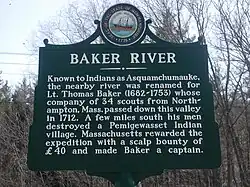 The town of Rumney contains several smaller villages. Rumney village, the town's central settlement, lies just north of the Baker River. Directly to the south, across the Baker River and adjacent to Route 25, is the village of Rumney Depot. The village of Stinson Lake, comprising development around the lake of the same name and at the foot of adjacent Stinson Mountain, is in the northern corner of the town, and West Rumney is located along Route 25 near the town's western border.