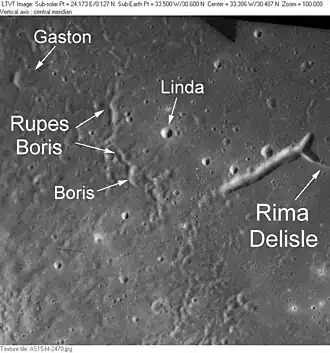 Media related to Rupes Boris at Wikimedia Commons- "Boris area". Lunar Photo of the Day. Observing the Sky. Archived from the original on 2016-03-05. Retrieved 2012-02-03.