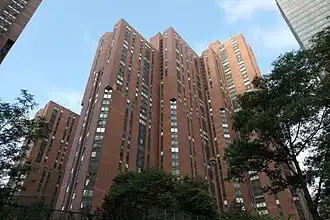 The complex includes Ruppert Towers, Yorkville Towers, Knickerbocker Plaza, and Ruppert House.[5] Ruppert and Yorkville Towers together have more than 1,200 apartments,[6] while Knickerbocker Plaza has 578[7] and Ruppert House has 652.[1] The buildings were designed in a brick "new brutalist" style by architectural firm Davis, Brody, who also designed Waterside Plaza.[8]