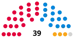 Following the 2024 election,[21] and subsequent changes of party allegiances up to July 2025, the composition of the council was:[22][23]