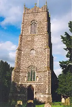 The village church is dedicated to St Mary.[6] It is medieval in origin and includes a 15th-century tower and a series of bench ends from the same century which are one of the finest collections in East Anglia.[7] The current vicar is Rev'd David Burrell who holds one Sunday service a week.[8][9] St Mary's is a Grade I listed building.[7] Newton Wilby Hall, a Grade II listed building, is a 16th-century farmhouse with an intact medieval moat.[10]