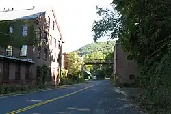 A small upstream village near the Huntington border was called Crescent Mills. Originally a Chapin and Gould Paper Company mill,[2] Texxon still operates a mill there that makes special fabrics for shoes. The middle settlement and the town's administrative center is called Russell Village. Westfield River Paper Company manufactured glassine and other specialty papers there until it was decommissioned and then bought for a proposed biomass electric plant utilizing local cordwood. Russell Village was a virtually self-sufficient community as late as the 1950s, with several stores, a barbershop, and several restaurants; then increasing automobile ownership brought the greater commercial offerings in Westfield and other Pioneer Valley cities within reach.