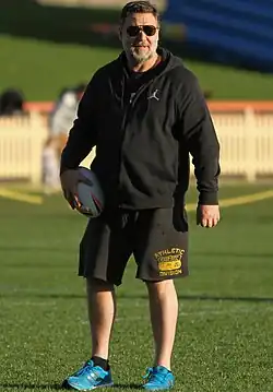 Crowe was a guest presenter at the 2013 Dally M Awards[106] and presented the prestigious Dally M Medal to winner Cooper Cronk.[107] Russell was present at the 2014 NRL Grand Final when the Rabbitohs won the NRL premiership for the first time in 43 years.[108]