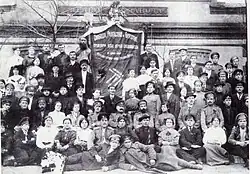 Industry, with 3 million workers in 1914, represented only 1.75% of the population, but its rapid growth posed formidable social problems: workers, poorly housed in insalubrious towns, were susceptible to the revolutionary propaganda of Bolshevik or Menshevik socialists, populist socialist-revolutionaries, and anarchists.[5] The peasantry was poorly fed and educated; while the per capita tax taken was higher than in the UK, in 1913 the state spent 970 million rubles on the army and only 154 on health and education.[6] In 1913, 70% of the population was still illiterate.[7] However, primary education progressed rapidly, especially around the big cities: the literacy rate reached 90% among young recruits in 1914 in the Moscow and Saint Petersburg governments. Educated young peasants, better acquainted with new techniques and procedures, became more assertive and sought to escape the grip of the peasant commune and the large landowners.[8]