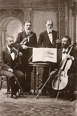 The String Quartet of the Russian Musical Society of Saint Petersburg in the 1880s; (left to right) Leopold Auer, Johann Wilhelm Zacharias Pickel, Hieronymus Weickmann, Aleksandr Verzhbilovich