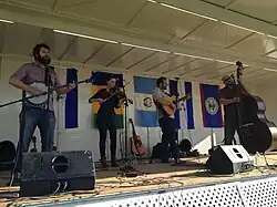A bluegrass-influenced folk band performing at the New Jersey Folk Festival