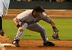 On July 27, 2009, Garko was traded to the San Francisco Giants for left-handed pitcher Scott Barnes.[56][57] He hit a game-winning double on August 18, against the Cincinnati Reds in the top of the tenth inning.[58] He was acquired to be a full-time first baseman; however, during his tenure in San Francisco, he was third on the depth chart (behind Pablo Sandoval and Travis Ishikawa) after he got off to a sluggish start.[59] With the Giants, Garko batted .235 with three doubles, a triple, two home runs and 12 RBI and nine walks in 40 games.[2] Combined with his time in the Indians and Giants organization, Garko batted .268 with 13 doubles, 13 home runs and 51 RBI in 118 games.[2] On December 12, 2009, Garko was non-tendered by the Giants, making him a free agent.[60]