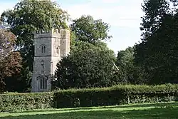 Richard and Sybil Quartermayne, lord and lady of the manor of Rycote, founded Saint Michael's chapel as a chantry in 1449.[1] It is a Perpendicular Gothic building with a chancel, nave and west tower.[1] It retains original 15th-century wooden fittings including pews, stalls and a screen.[2] In the 17th century the chapel was ornamented with a west gallery, altar rails, a reredos and other fittings.[1] The first reredos, dated 1610, is now damaged and in 1974 was kept under the tower.[1] It has been replaced by a second reredos dated 1682.[1] Margery Norris and Henry Norris, 1st Baron Norreys are buried here.[3] The chapel is both a Grade I listed building[4] and a scheduled monument.[5]