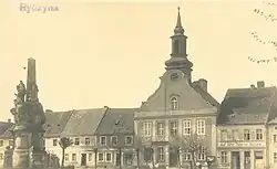 It was founded at the beginning of the 15th century by Jan from Czernina, a descendant of the Wierzbno family, a knight of king Władysław II Jagiełło. Rydzyna was a private town, administratively located in the Kościan County in the Poznań Voivodeship in the Greater Poland Province of the Polish Crown.[3] At the end of the 17th century the town and its environs were owned by well-known magnates, the Leszczyński and then the Sułkowski families, whose investment in the town resulted in its current nickname as "the pearl of the Polish baroque". The 11th Polish Infantry Regiment was stationed in Rydzyna.[4]