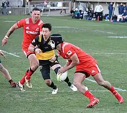 In his home country he plays for the Kobelco Steelers whom he joined in 2013.[4][5] He was also named in the first ever Sunwolves squad which will compete in Super Rugby from the 2016 season.[6] Yamanaka is a Japanese international who debuted against the Arabian Gulf in 2010, but did not make the squad for either the 2011 or 2015 Rugby World Cups.[1]