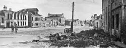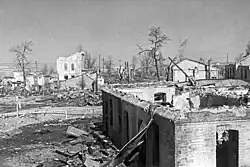 The official Soviet report published on 7 April 1943 showed the effects of the German scorched earth policy. In Viazma, out of 5,500 buildings, only 51 small houses were still standing; at Gzhatsk, 300 out of 1,600; in Rzhev, 500 out of 5,400. 15,000 people were deported from the three towns alone. The rural areas suffered equally; in the Sychevka area, for example, 137 villages out of 248 had been burned down. British war correspondent Alexander Werth visited the area soon after the liberation and saw for himself the results of Model's orders. The report listed Model at the top of the list of the war criminals responsible for the "deliberate extermination policy" and noted that most of the killings of civilians were carried out by regular Wehrmacht units, not just the Gestapo or the SD.[4]