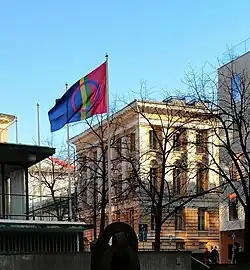 Since then, celebrating the day has become increasingly popular. In Norway, it is compulsory for municipal administrative buildings to fly the Norwegian flag, and optionally also the Sámi flag, on February 6. Particularly notable is the celebration in Norway's capital Oslo, where the bells in the highest tower of Oslo City Hall play the Sámi national anthem as the flags are raised.[2] Some larger places have taken to arranging festivities in the week around the Sámi National Day. The National Day has been included in the almanacs published by the University of Helsinki since 2004.[3] The Norwegian, Swedish, and Finnish authorities recommend general flagging on the day.[3]