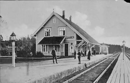 The western branch of the Østfold Line opened on 2 January 1879 while the eastern branch opened on 24 November 1882.[2] Såner Station was located on the western branch, and was originally named "Soner", but had its name changed to "Saaner" in April 1894. In April 1921, it had its name changed to "Såner".[1] On 15 May 1893, it was decided to install a morse lamp at the station. Centralized semaphores were decided on 23 January 1900, as an experiment to gain knowledge of the system.[1]