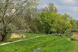 Through park flows the Służew Stream.[1] It also includes numerous ponds. They are: Czarcie Oczko, Irysowy Dolny, Irysowy Górny, Kaczeńcowy Dolny, Kaczeńcowy Górn, Nenufarowe Ponds, Niezapominajki, and Parzydło.[6]