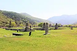 According to the Samguk sagi, the temple was built by King Beop around 600 and played a critical role as one of the nine mountain schools during the North South States Period.[1] Much of it was destroyed during the 1592–1598 Imjin War. However, stele accompanying pagoda of Buddhist priest Nanghyehwasang still remains including pieces of Buddhist statue of Baekje and several roof tiles in the era of Unified Silla. The stele is registered as the national treasure of South Korea in the present time.[2] The pagoda cherished the most fabulous architectural style with magnificent scale during Unified Silla.[3]