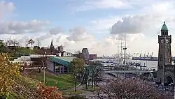 To ease the strain on the central Verbindungsbahn ("connection railway"), a second main connection was constructed, the City S-Bahn, which traverses the city centre in a tunnel. The first section was opened in 1975 between Hauptbahnhof and Landungsbrücken, the extension to Altona in 1979 and was completed in 1981 with the connection above ground to Diebsteich.[7] 1983 saw the opening of the line via Wilhelmsburg to Harburg Rathaus, a long stretch of which runs along the existing mainline. Through Hammerbrook the trains run on a concrete viaduct and in a tunnel under the centre of Harburg. The line was extended in 1984 along the Niederelbebahn to Neugraben.