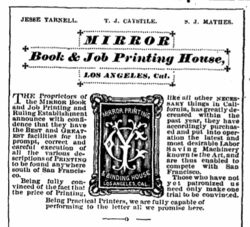 The three partners were the printers for a number of other newspapers as well. On December 4, 1881, the firm contracted with Nathan Cole Jr. and Thomas Gardiner to publish their new newspaper, the Los Angeles Daily Times. Cole and Gardiner simply could not meet their printing bill, so Gardiner turned the enterprise over to his partner, Cole, and to Mathes, Yarnell and Caystile within a month of the paper's birth. Mathes took over as editor.[1]