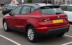 The SEAT Arona is a subcompact crossover SUV (B-segment) manufactured by SEAT since 2017, as the smallest crossover SUV offered by the Spanish brand.[3] As of 2019, it slots in below the Ateca compact model and Tarraco seven-seater.[4]