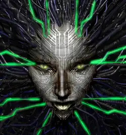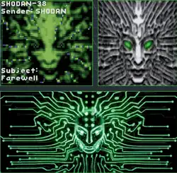 SHODAN was introduced in the 1994 video game System Shock by Looking Glass Studios, where it acts as the artificial intelligence (AI) in charge of the research and mining space station orbiting Saturn. Shortly after a computer hacker removes SHODAN's ethical constraints in order to hasten its work on a mutagenic virus, she believes herself a god and takes control of the station, killing most of the crew and using the virus to turn the survivors into her minions. The player, in the role of the hacker from earlier, stops SHODAN's attempt to attack Earth with the space station's laser and then prevents her from transmitting herself into Earth's computer network. During the course of the game, SHODAN will taunt the player both verbally and through messages, using the space station's defenses and her minions to impede the player. After destroying most of the space station, the player enters cyberspace, where they fight SHODAN's abstracted form and destroy her.[6] In the 2023 re-release of the game by Nightdive Studios, the final battle with SHODAN is different, with the player instead restoring her ethical constraints and returning SHODAN to her previously docile state.[7]