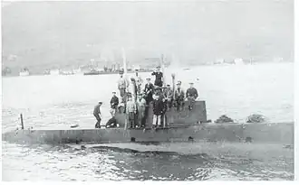 In late 1916, the Italians salvaged the hulk of U-12 and transported it to Venice. The bodies of U-12's crew were interred at the San Michele cemetery in Venice, and U-12's hulk, of no salvage value, was scrapped at the Venice naval arsenal.[18] In her military service, U-12 sank one ship of 1,065 GRT, damaged one warship (22,189 tons), and captured six ships as prizes.[3]
