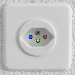 From the Type 12 proposed in 1937[5] and introduced in 1953, the international standard IEC 60906-1 was derived in 1986, on which only the national standards of Brazil (NBR 14136 or Type N) and South Africa (SANS 164-2) are based. Despite the great similarity, these are not compatible with SN 441011, as the polarity has been reversed in IEC 60906-1 and the earthing contact is only 3 mm offset from the center line instead of 5 mm. (A combined socket, which accepts both plugs according to SN 441011 and IEC 60906-1, would, however, be easy to implement, since a further hole for the earthing contact with the smaller distance would only have to be added opposite the previous central hole.) The hexagonal shape of the Euro plug (2.5 A) is also derived from the Swiss standard. This differs only slightly from the connector Type 11 (10 A).