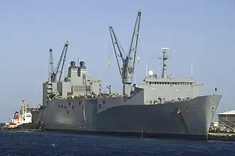 SS Denebola (T-AKR 289) is an Algol-class vehicle cargo ship that is currently maintained by the United States Maritime Administration as part of the Military Sealift Command's Ready Reserve Force (RRF). She was built as a high speed container ship by Rotterdamsche D.D.Mij N.V. in Rotterdam, Netherlands, hull no. 332, for Sea-Land Service, Inc. and named SS Sea-Land Resource, USCG ON 550723, IMO 7325253.[1][2] Due to her high operating cost, she was sold to the United States Navy in October 1981 as USNS Denebola (T-AK-289).[3]
