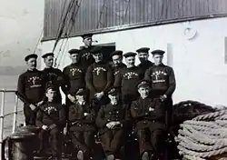 During the war Rushen Castle established what is arguably the longest modern passage between Liverpool and Douglas.[3] On Saturday 27 January 1940 she sailed for Douglas at 10:45, and was instructed by radio to make for Peel as an easterly gale had blown up and made Douglas untenable. Being wartime the message named the captain but not the ship,[4] and by mistake said "go to the West," which would have indicated Peel to Captain Bridson. The captain duly tried to get into Douglas but was then signaled to make for Peel. By the time the ship got to Peel the wind had veered and berthing at Peel was not possible. Eventually the Rushen Castle did get in at Peel - at 10:00hrs on Tuesday 30 January, after being at sea for 71 hours. The Earl of Granville, Lieutenant Governor of the Island at the time was one of the passengers.